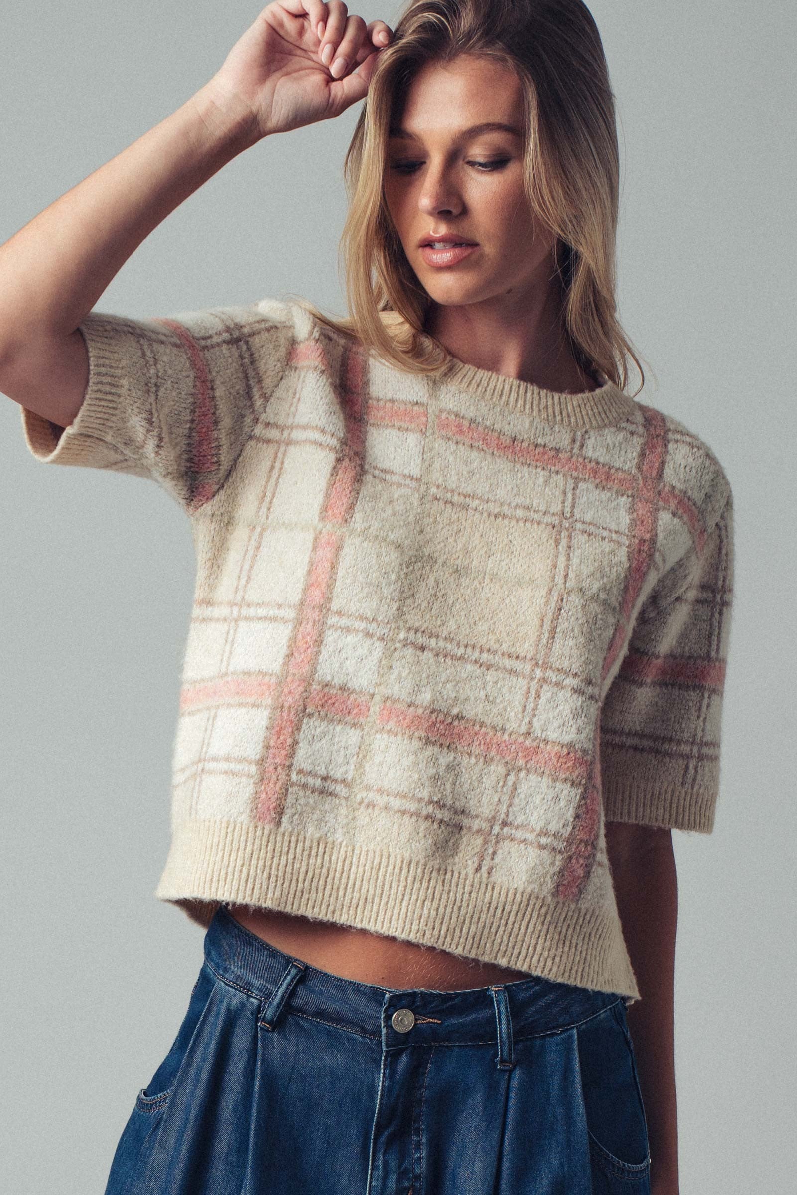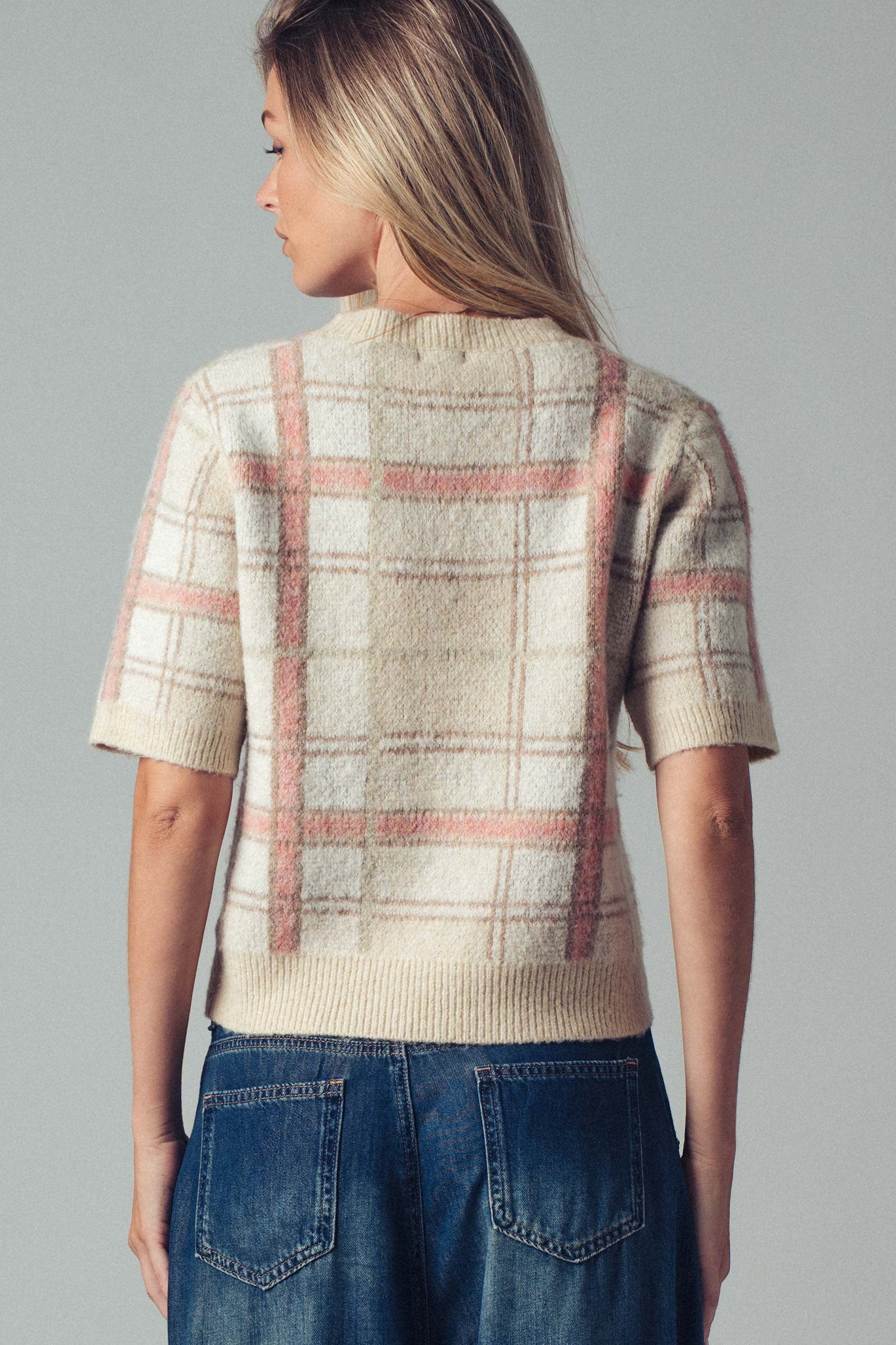 ZARA - Short Sleeve Plaid Sweater